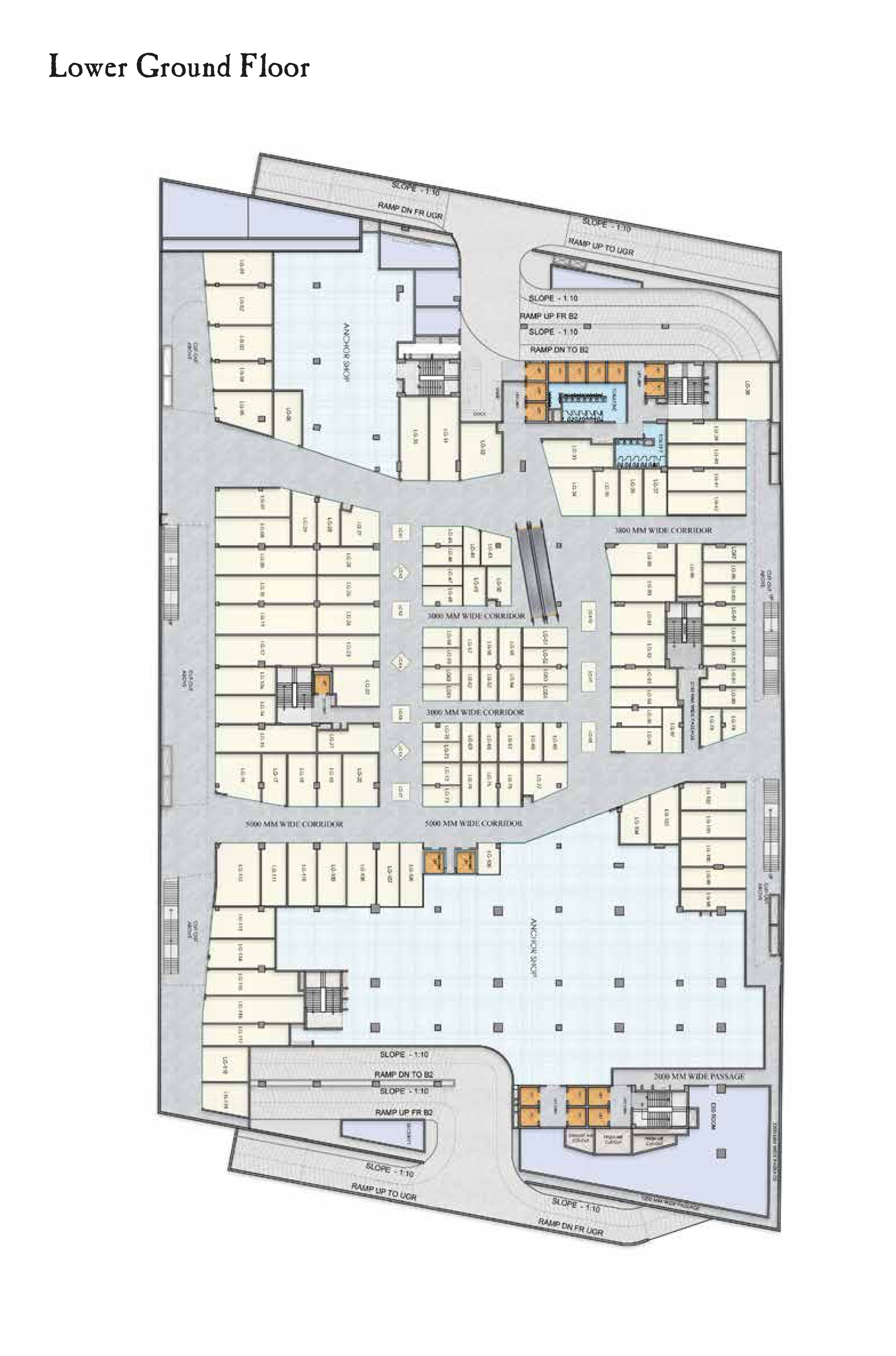 * Spacious 12-18 ft corridors across the shop fronts