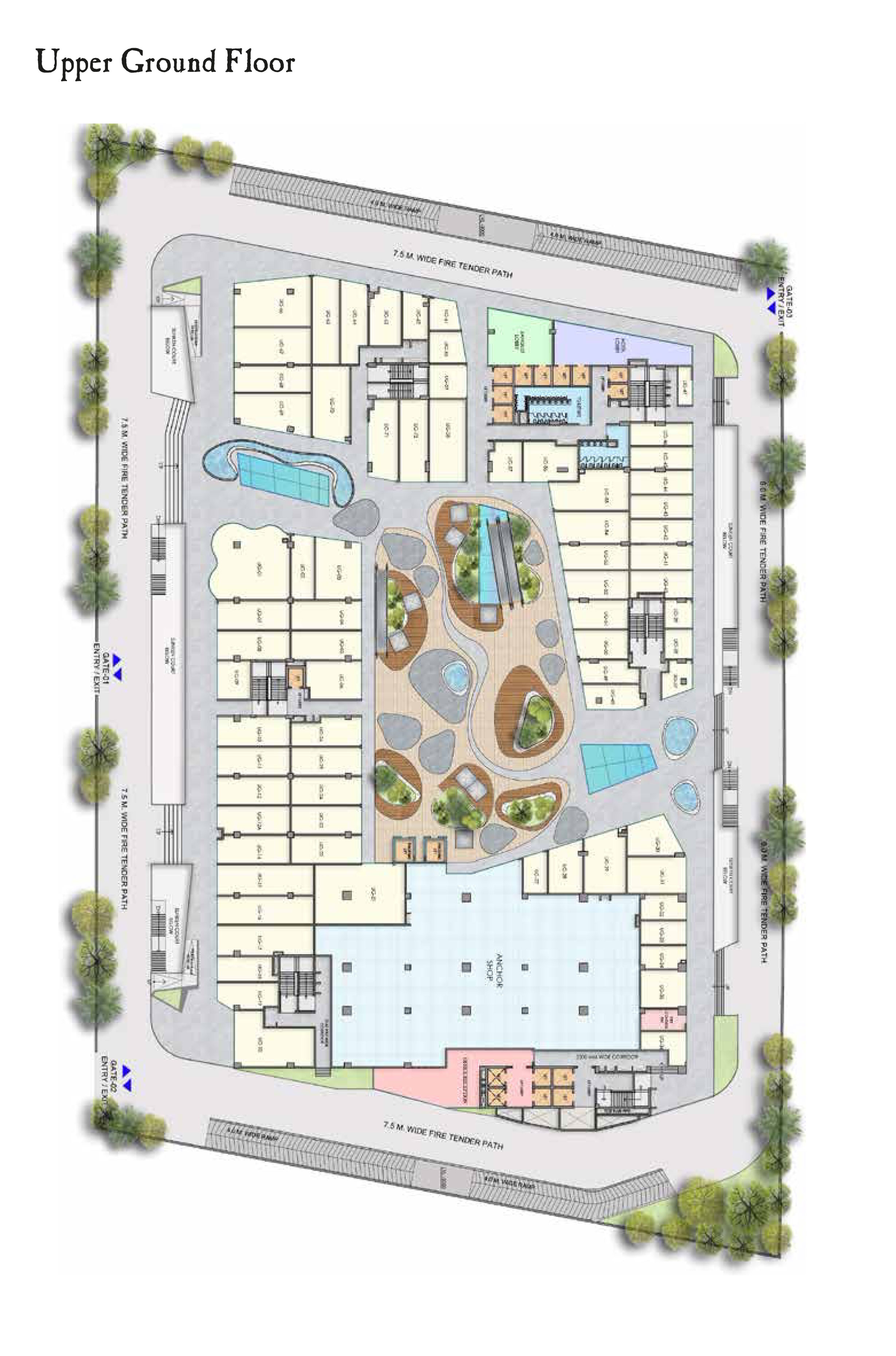 * Double height Ground floor shops facing the atrium and main roads