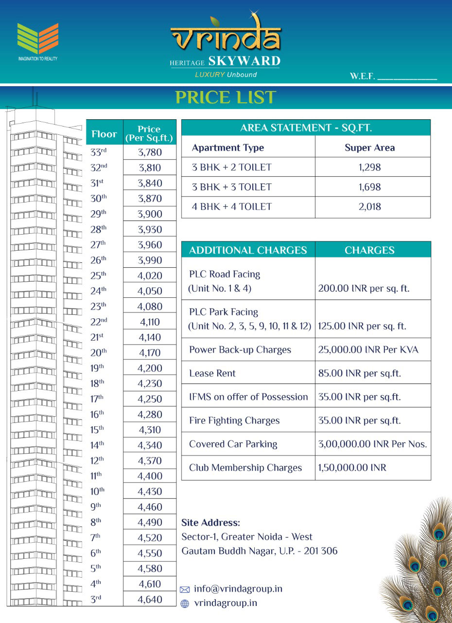 Vrinda Heritage Skyward Price Plan